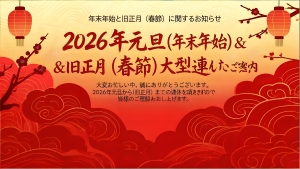 2026年元旦(年末年始)&旧正月(春節)大型連休についてのご案内